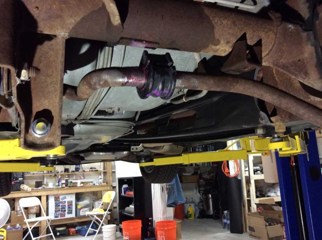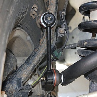 Порядок работы по замене втулок следующий: загнать машину на подъемник, ослабить болты передних колес, снять колеса, открутить гайки, которыми стойки крепятся к стабилизатору, разъединить их, открутить болты крепления – передние полностью, задние –ослабить, снять скобы, снять старые втулки, зачистить посадочные места втулок спереди и сзади от остатков грязи, смазать внутреннюю поверхность втулок силиконовым спреем или мыльным раствором, поставить детали на место, произвести сборку в обратной последовательности.